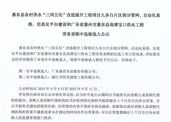 廣東省惠州市中心城區(qū)地下管網(wǎng)系統(tǒng)提升工程-內(nèi)街小巷排水管網(wǎng)病害修復(fù)及錯混接改造項目一期施工勞務(wù)采購比選公告……